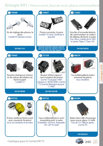 C a talogue pour le C ombi V W T3 245