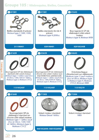 Groupe 105 : Vilebrequins, Bielles, Coussinets