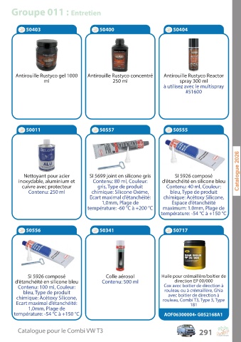 Catalogue pour le Combi VW T3 291