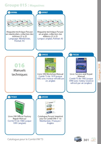 C a talogue pour le C ombi V W T3 301