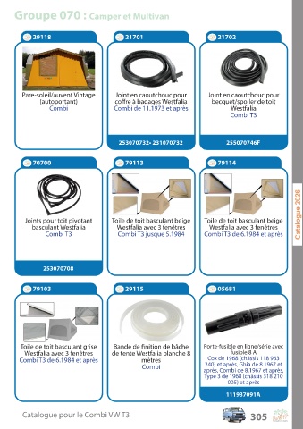 C a talogue pour le C ombi V W T3 305