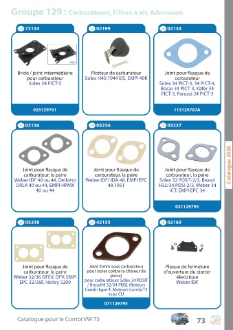 Groupe 129 : Carburateurs, Filtres à air, Admission