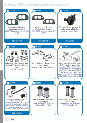 Groupe 129 : Carburateurs, Filtres à air, Admission
