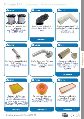 Groupe 129 : Carburateurs, Filtres à air, Admission