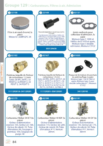 Groupe 129 : Carburateurs, Filtres à air, Admission