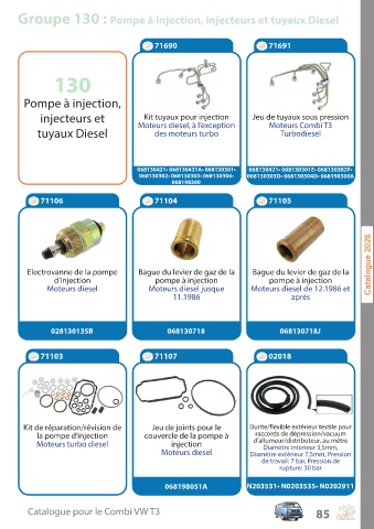 Groupe 130 : Pompe à injection, injecteurs et tuyaux Diesel