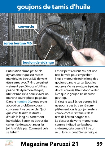 mandée, les écrous M6 doivent l'huile moteur de fuir le long des