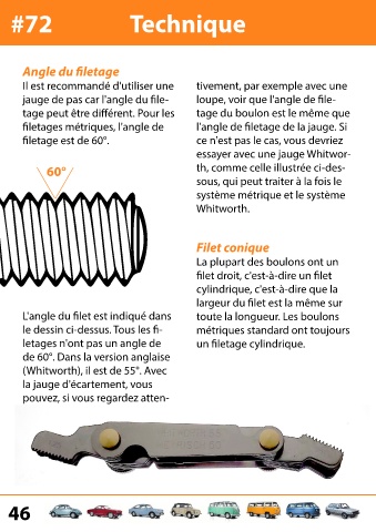 filetage est de 60°. ce n'est pas le cas, vous devriez