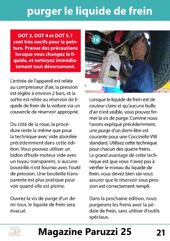 mi-tour, le liquide de frein sera purgerons les freins avec la pé-