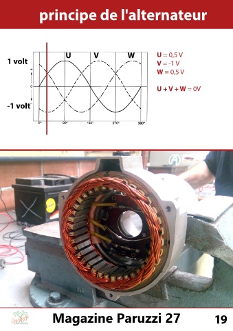 principe de l'alternateur U V W U = 0,5 V 1 volt V = -1 V W = 0,5 V U + V + W = 0V -1 volt Magazine Paruzzi 27 19 CLASSIC CAR PARTS