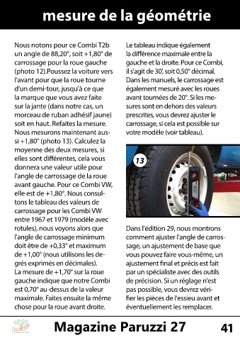 carrossage pour la roue gauche gauche et la droite. Pour ce Combi,