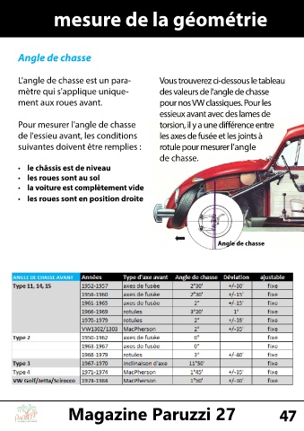 L'angle de chasse est un para- Vous trouverez ci-dessous le tableau