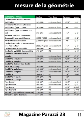 mesure de la géométrie Magazine Paruzzi 28 11 CLASSIC CAR PARTS