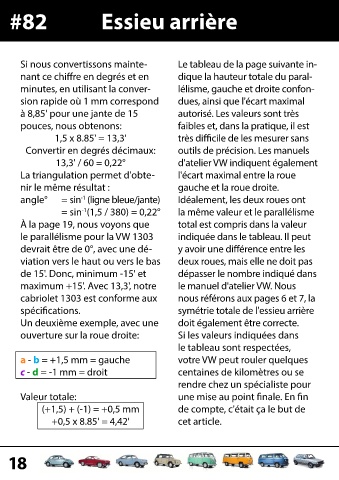 le parallélisme pour la VW 1303 indiquée dans le tableau. Il peut