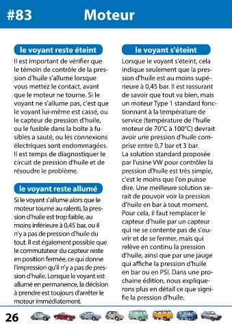 sion d'huile. Lorsque le voyant est en bar ou en PSI. Dans une pro-