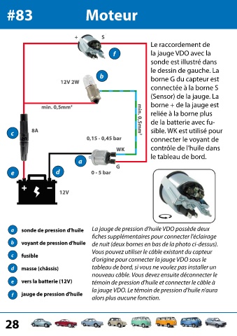 la jauge VDO. Le témoin de pression d'huile n'aura
