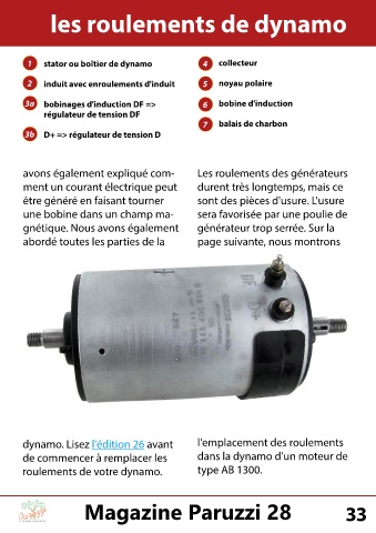 dynamo. Lisez l'édition 26 avant l'emplacement des roulements