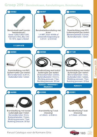 Groep 209 : Benzinekraan, Aansluitingen, Benzineslang