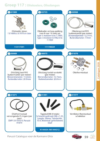 Groep 117 : Oliekoelers, Olieslangen