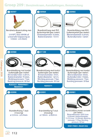 Groep 209 : Benzinekraan, Aansluitingen, Benzineslang
