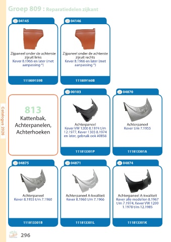 Achterpanelen, Kever VW 1200 8.1974 t/m Kever t/m 7.1955