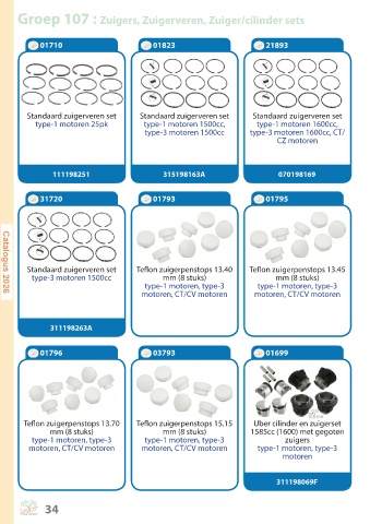 Groep 107 : Zuigers, Zuigerveren, Zuiger/cilinder sets
