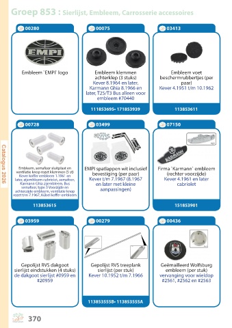 Groep 853 : Sierlijst, Embleem, Carrosserie accessoires