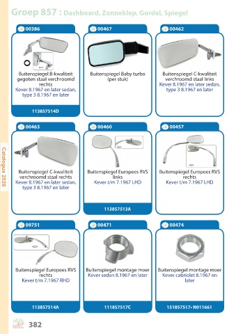 Groep 857 : Dashboard, Zonneklep, Gordel, Spiegel