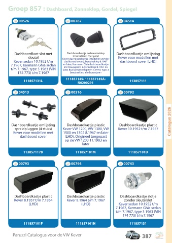 Kever sedan 10.1952 t/m dashboard cover), benzineklep 8.1967 dashboard cover (LHD)