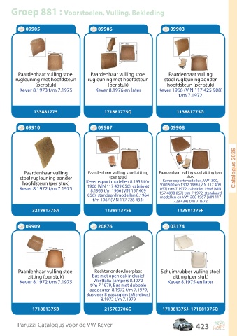 Groep 881 : Voorstoelen, Vulling, Bekleding