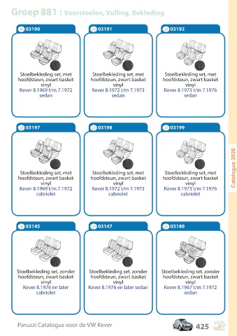 Groep 881 : Voorstoelen, Vulling, Bekleding