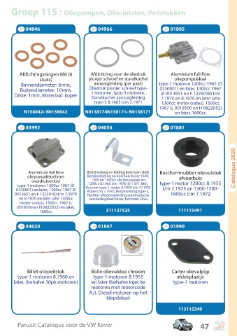 Groep 115 : Oliepompen, Olie-inlaten, Peilstokken