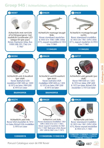 Groep 945 : Achterlichten, zijverlichting en schakelaars