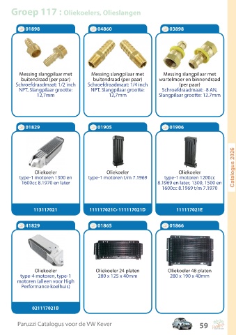 Groep 117 : Oliekoelers, Olieslangen