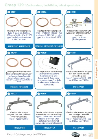 Groep 129 : Carburateur, Luchtfilter, Inlaat spruitstuk