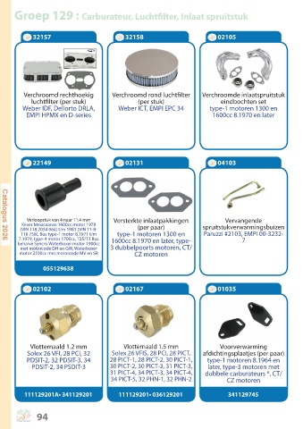 Groep 129 : Carburateur, Luchtfilter, Inlaat spruitstuk