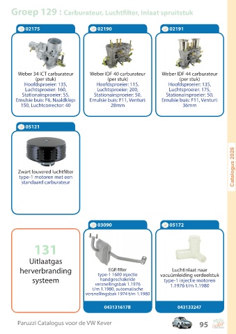 Groep 129 : Carburateur, Luchtfilter, Inlaat spruitstuk